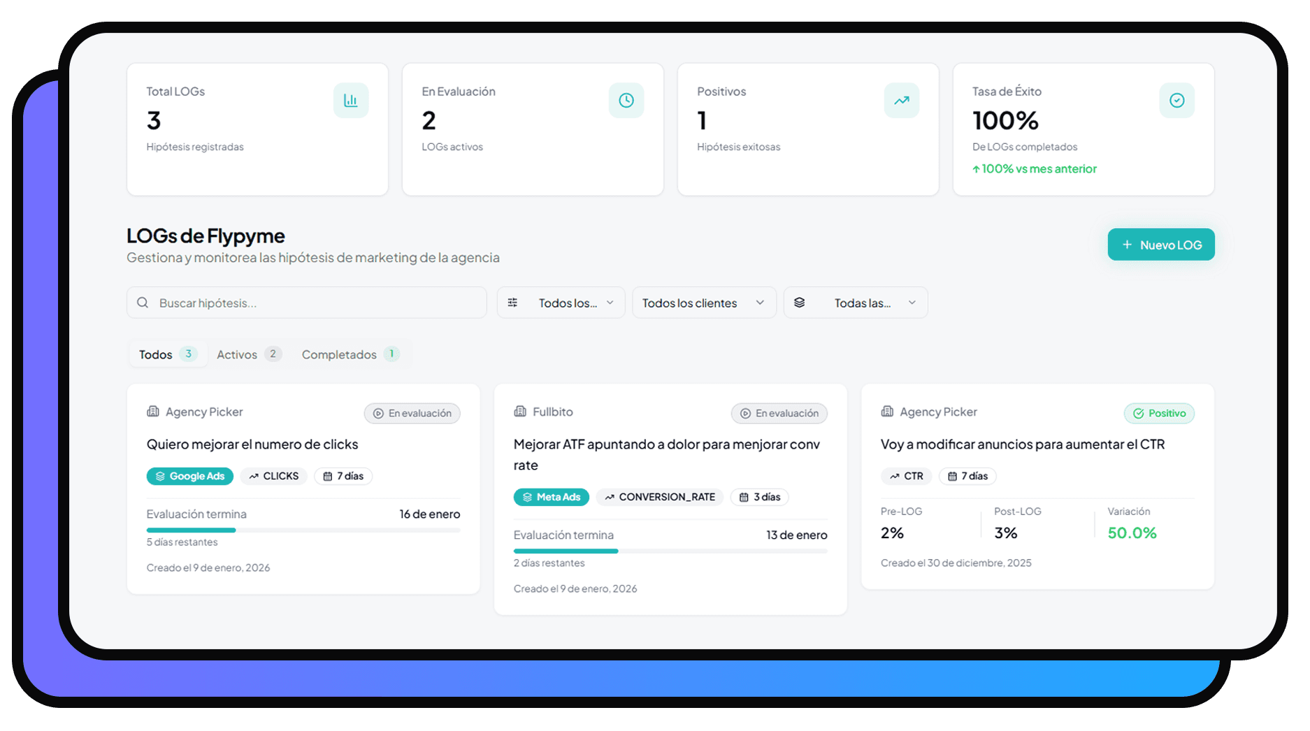 Define qué cambiaste, en qué canal y qué métrica esperas mejorar (CTR, CPA, ROAS, conversiones, etc.).